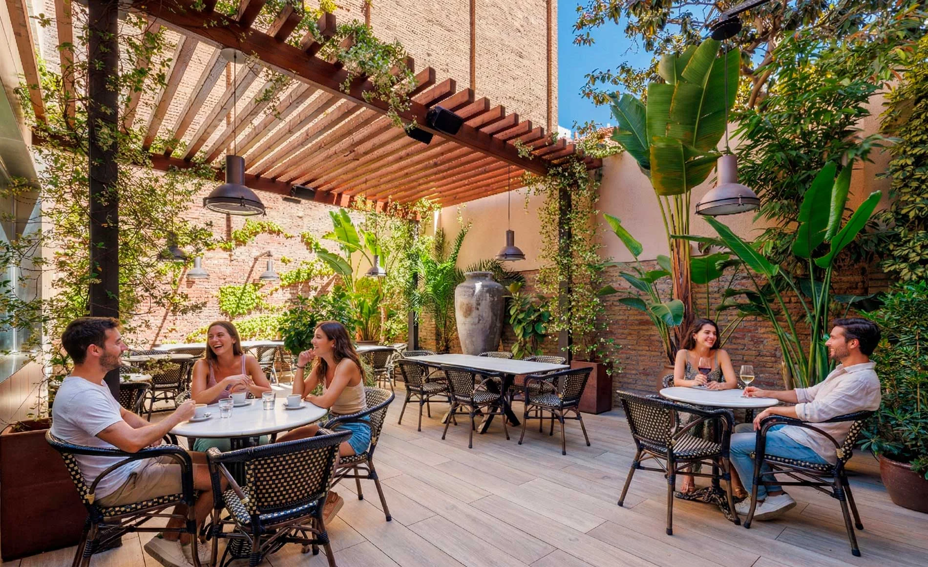 Si buscas un bar de tapas cerca de ti, en el corazón de Gracia, dentro del Hotel Ronda Lesseps, te espera La Terrasseta del Lesseps, un vibrante oasis urbano donde el verde de la naturaleza y un ambiente relajado se combinan. Nuestras dos terrazas interiores, rodeadas de exuberante vegetación, te ofrecen un espacio tranquilo en plena Plaza Lesseps de Barcelona, ideal para comer en Gracia, disfrutar de unas tapas o relajarte con un buen café en nuestra acogedora cafetería.